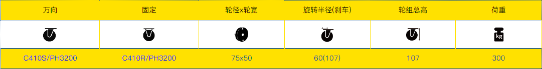 *这款脚轮适用于需要高负载能力和低高度限制的应用,如大型设备、烤箱设备等等。