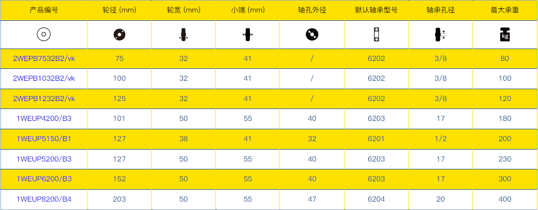 可选择其它兼容轴承,长度单位为"mm" ,重量单位为"kg"